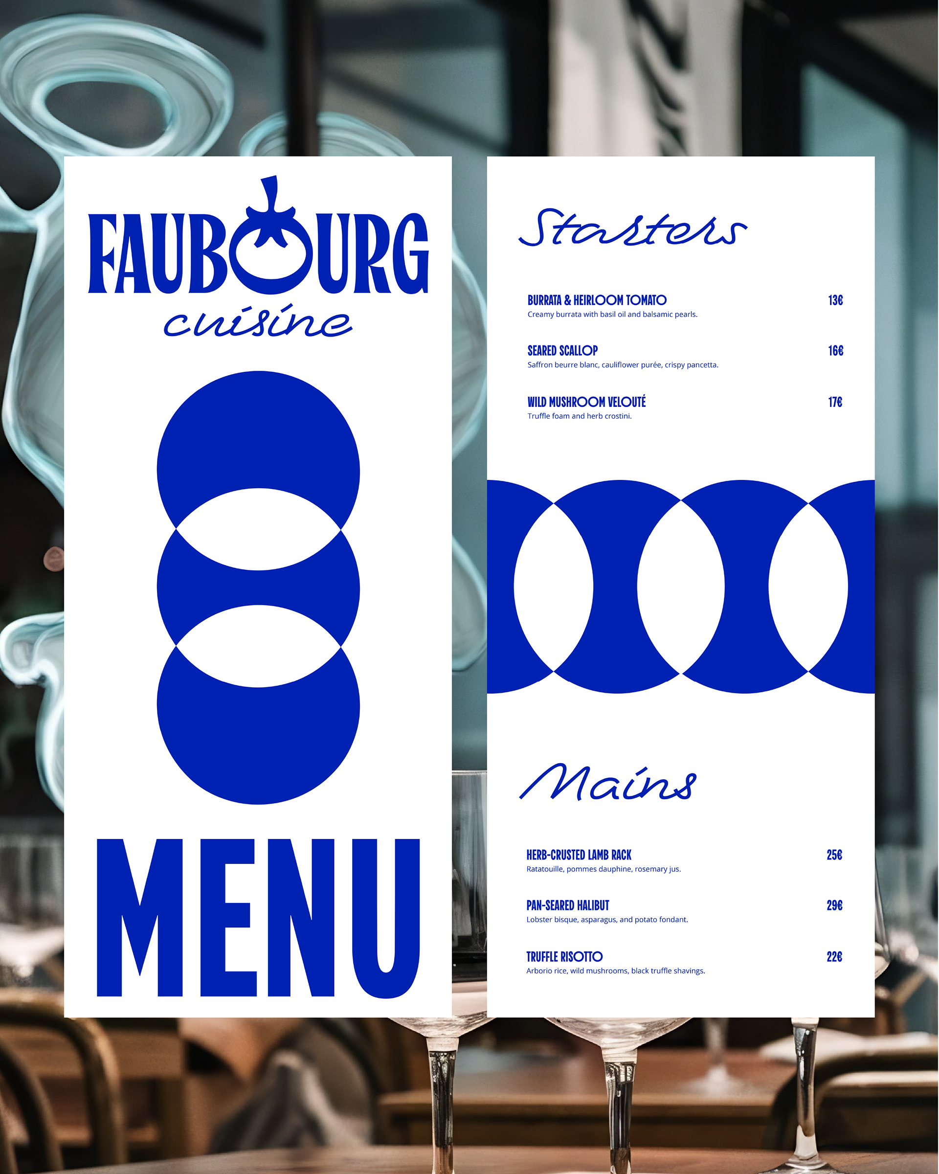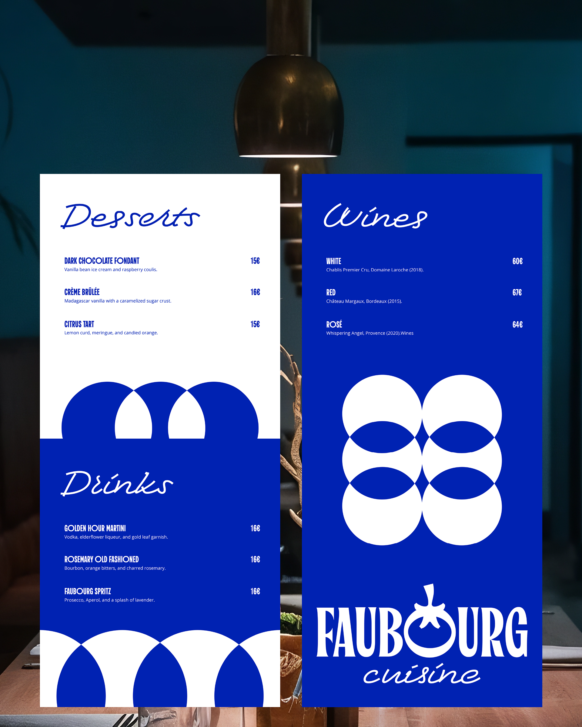 I created the logo and menu design for "Faubourg Cuisine" restaurant.