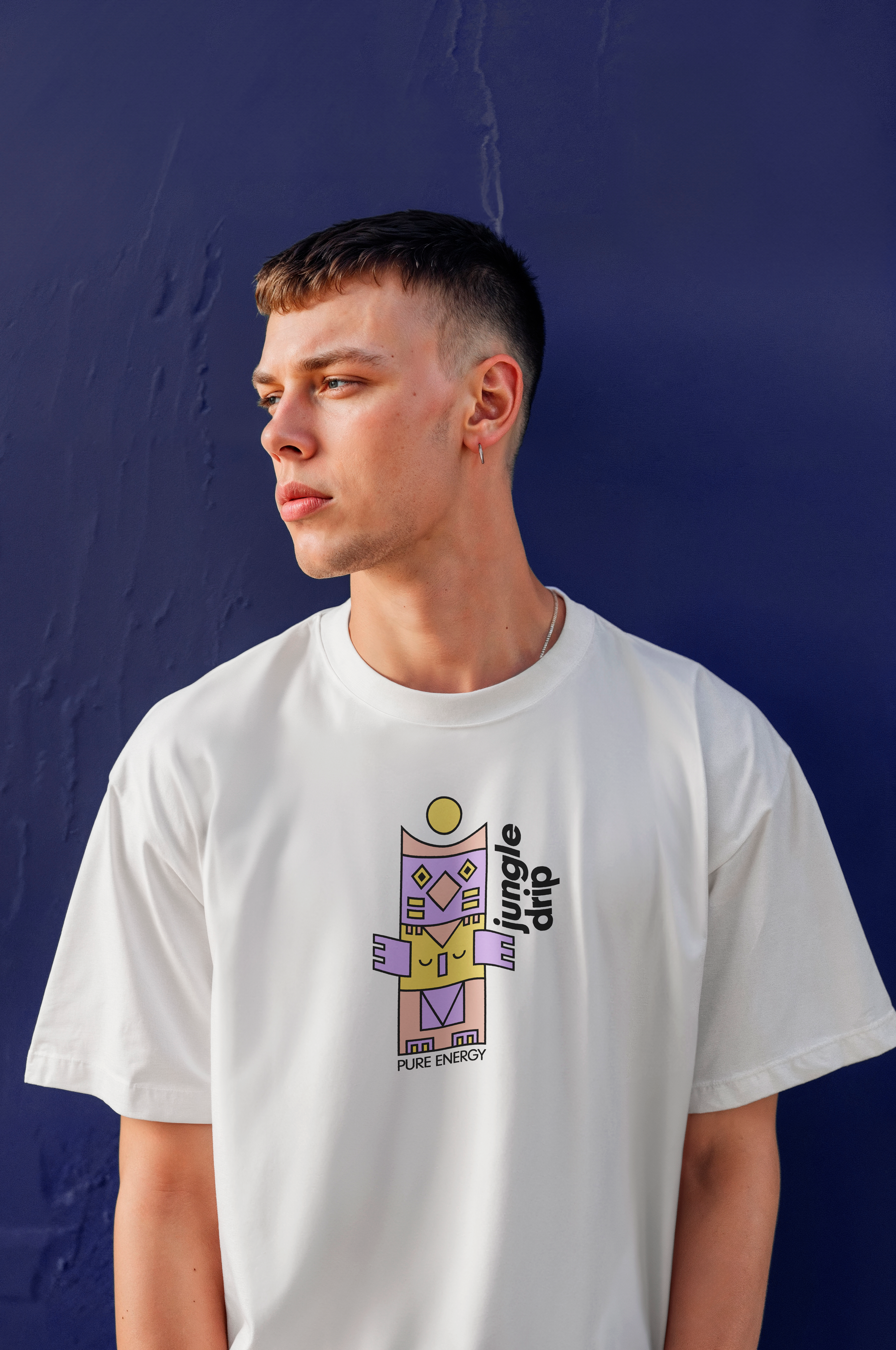 The color palette was carefully chosen to evoke the jungle theme without being overly literal or busy. The soft blue, playful purple, sunny yellow, and green work together to create a fresh, inviting, and slightly whimsical vibe. It hints at exotic origins and the natural energy the cold brew provides.
